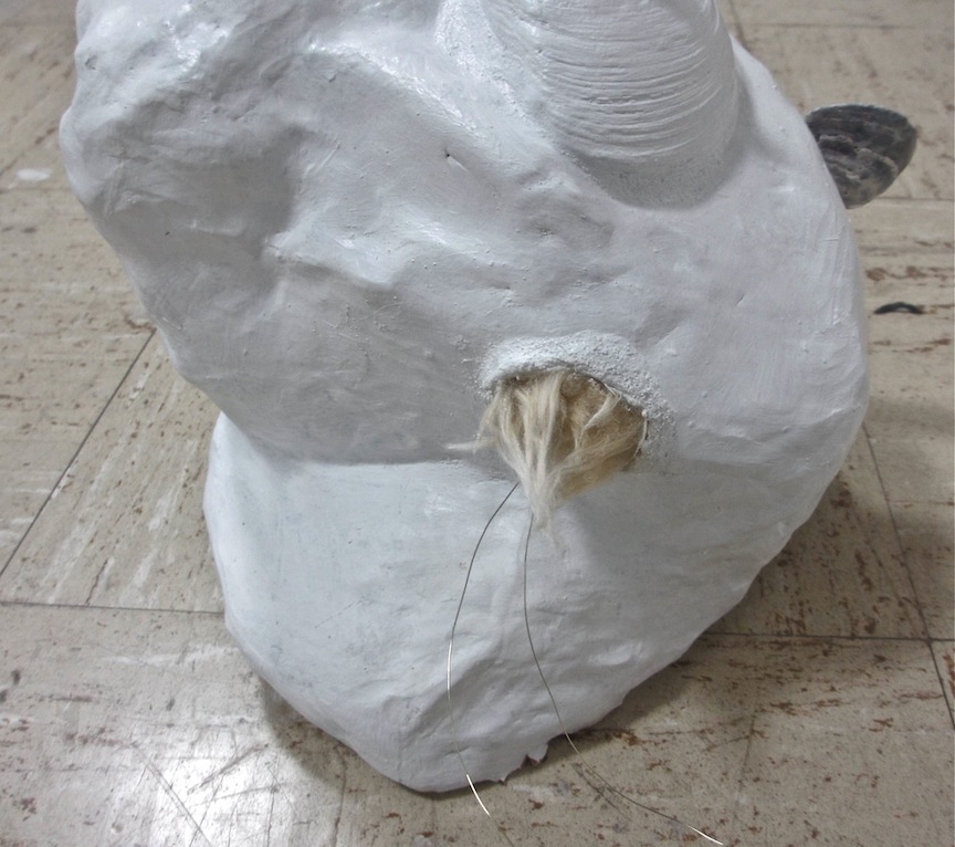 Homemade pop guard. Fishnets and spaghetti strainer. Made to record vocals on 'Sycofancy Pants'.